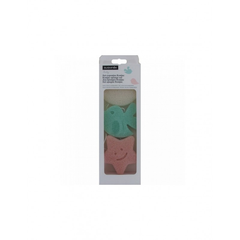 Descripción: El set de esponjas Konjac presenta diseños encantadores de flor blanca, pajarito verde y estrella rosa. Ideales para bebés, estas esponjas son suaves, naturales y biodegradables. Perfectas para los primeros baños, están elaboradas con la raíz de Konjac, una planta asiática 100% natural. Su textura suave se activa al mojarse, ofreciendo una experiencia delicada para la piel sensible del bebé.
