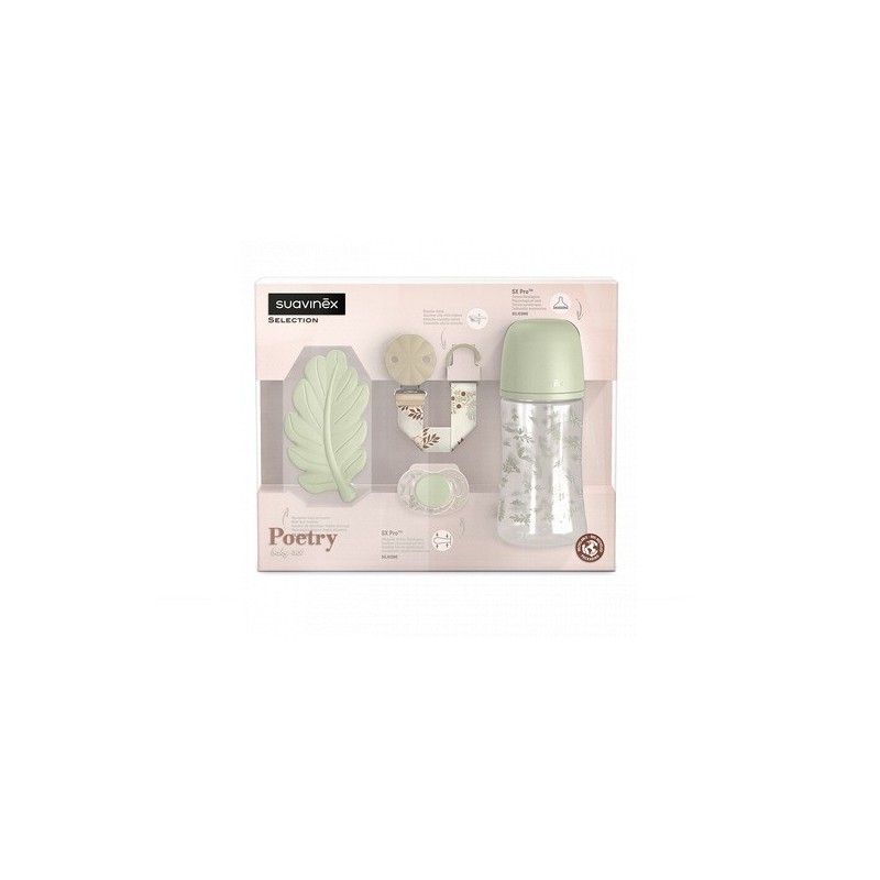 Un set regalo muy especial y completo para darle la bienvenida al recién nacido. Completo set regalo recién nacido de nuestra colección poetry. Este set incluye: chupete fisiológico de silicona, talla 0-6 meses, con tetina sx pro. Broche de tela. Biberón 270ml con tetina fisiológica de silicona, de flujo m. Mordedor de silicona. ¡el regalo de bebé perfecto!